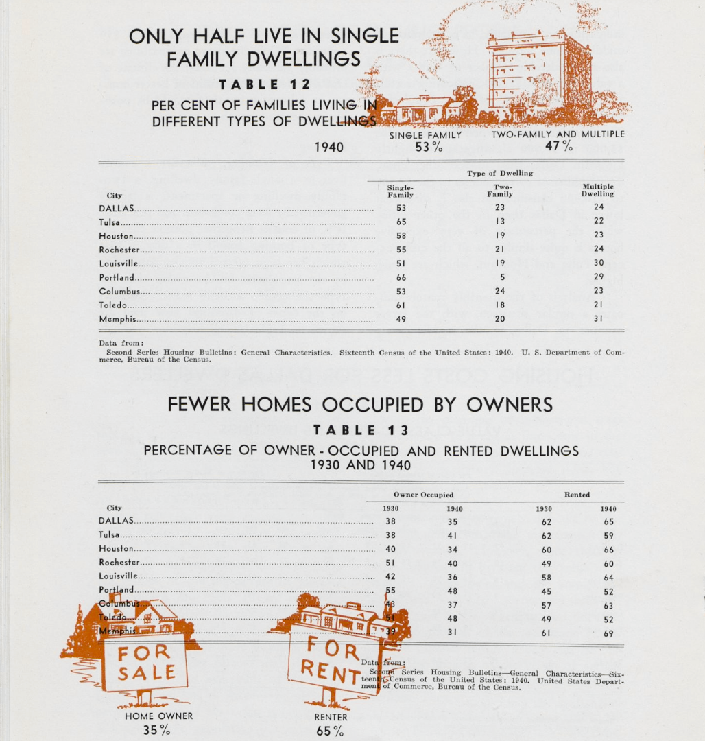 When he started work on the plan, he highlighted in a land-use report that Dallas' land uses were "badly intermingled" and that the city's housing conditions needed significant improvement. Bartholomew favored ownership over renting in single-family areas.