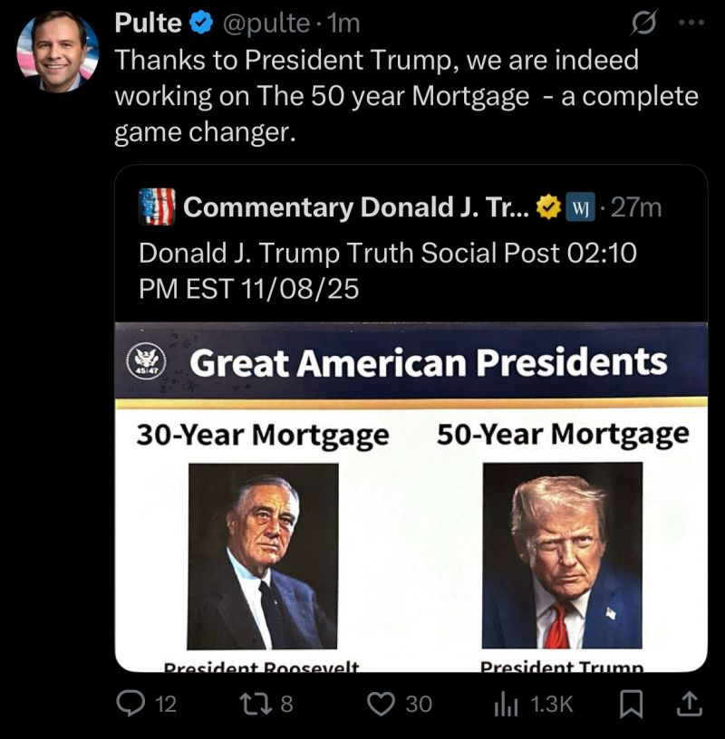 Trump and Pulte’s 50-year mortgage doesn’t fix that machine. But it does highlight how desperate we’ve become for anything that even sounds like relief. It’s a sign of national fatigue — a measure of how long the distance has grown between household economics and policy imagination.